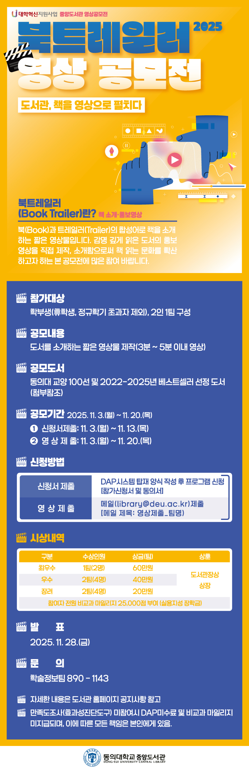 [[대학혁신지원사업] 중앙도서관 '영상 공모전' 프로그램 모집 안내]